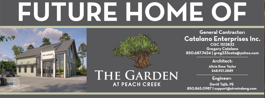 We are pleased to announce that The Garden at Peach Creek will be opening a new location and brand-new building in 2027. The new site will be located less than one mile east of our current location on Highway 98 and will offer expanded plant selections, enhanced retail space, and new garden-focused experiences for our community.